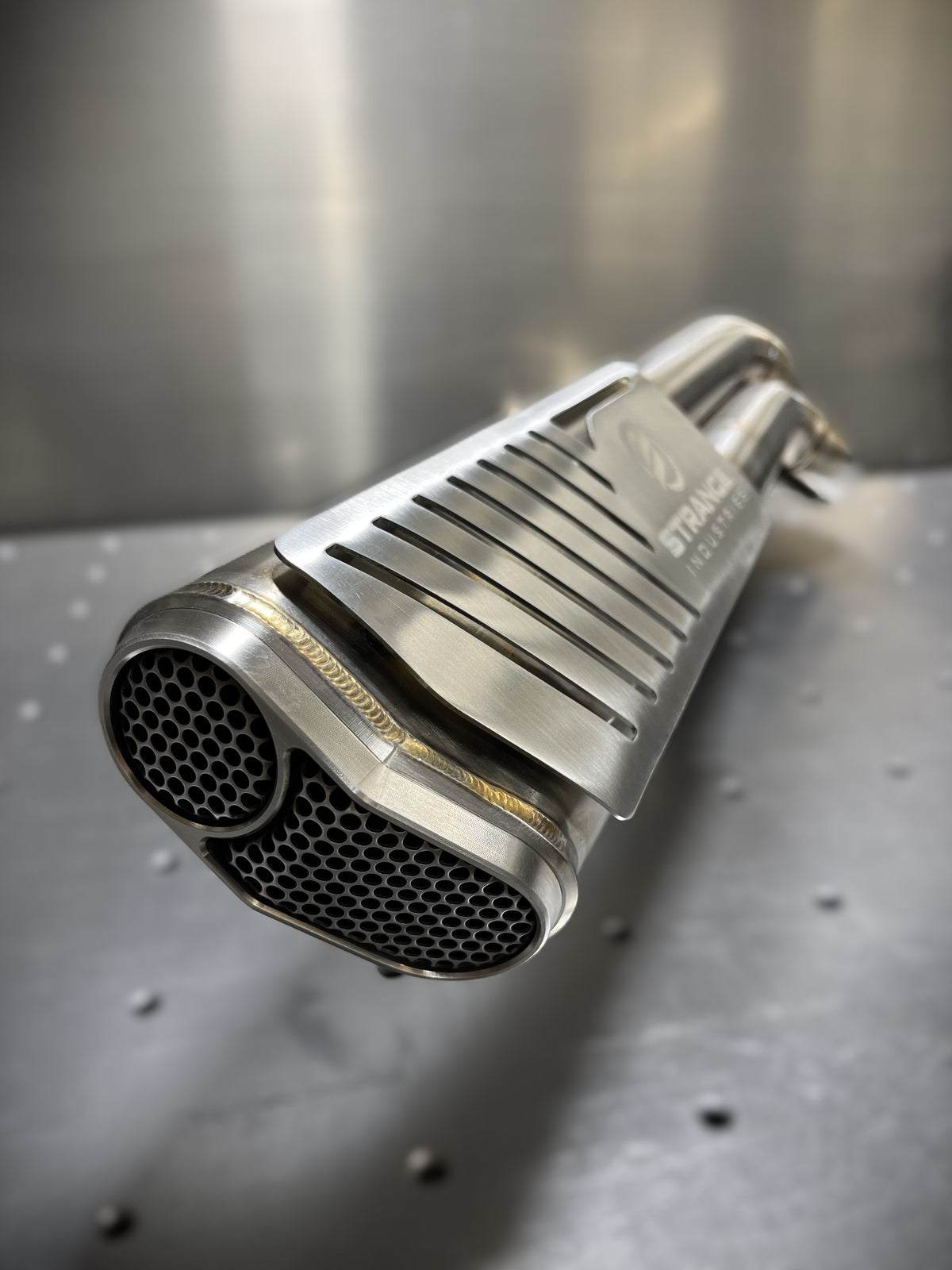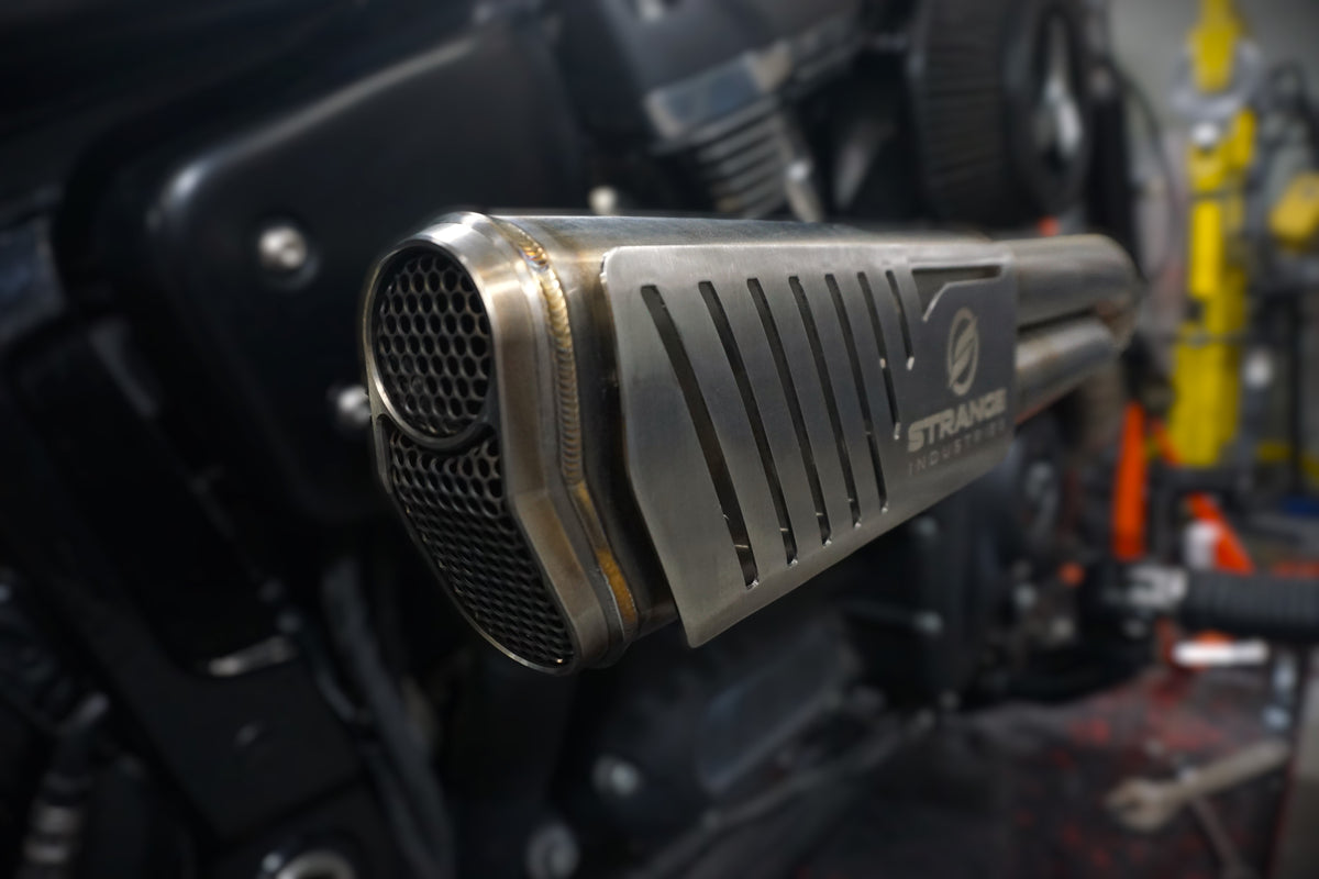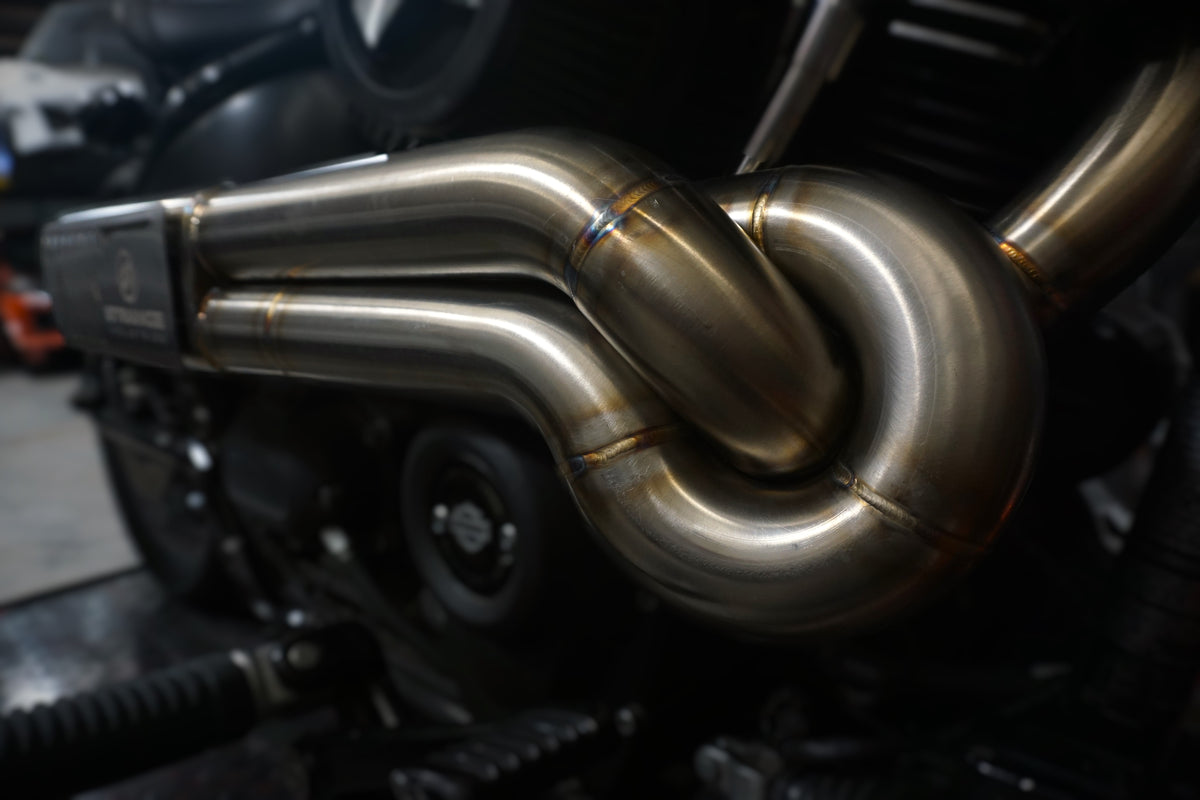 The Pump Double is our premier Harley Davidson M8 exhaust system that is sure to strike you like shotgun blast to the chest with its unique sound and appearance. It is fully built from 304 stainless steel, down to the packing inside the muffler. It features billet input flanges, machined retaining flanges, machined O2 bungs in the standard m18 as well as machined adapters for the m12 O2 sensors that come on the bike from the factory. This allows for ease of tuning and ability to run either sizes when demanded. The mandrel bent runners are 2" and join together raucously inside the muffler. The muffler has billet inlets and a billet outlet cap for a high quality finish. Everything is TIG welded and back purged so you can rest assured that this system is built to last, and will look good doing it.